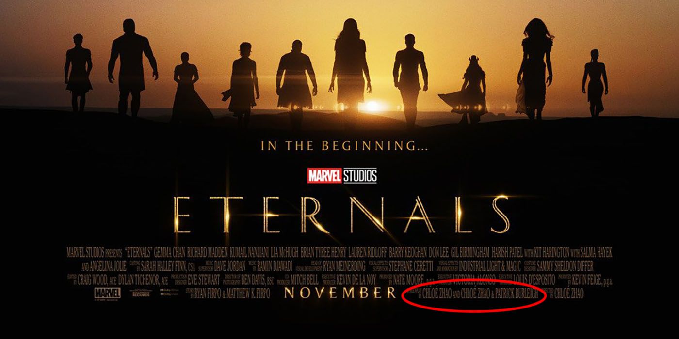 На днях студия Marvel представила первый официальный постер и трейлер «Вечных», однако на плакате эпического блокбастера Хлои Чжао самые внимательные заметили одну деликатную деталь: в расположенном в нижней части афиши блоке драматургов создательница «Земли кочевников» мелким шрифтом дважды упомянута в качестве автора сценария.